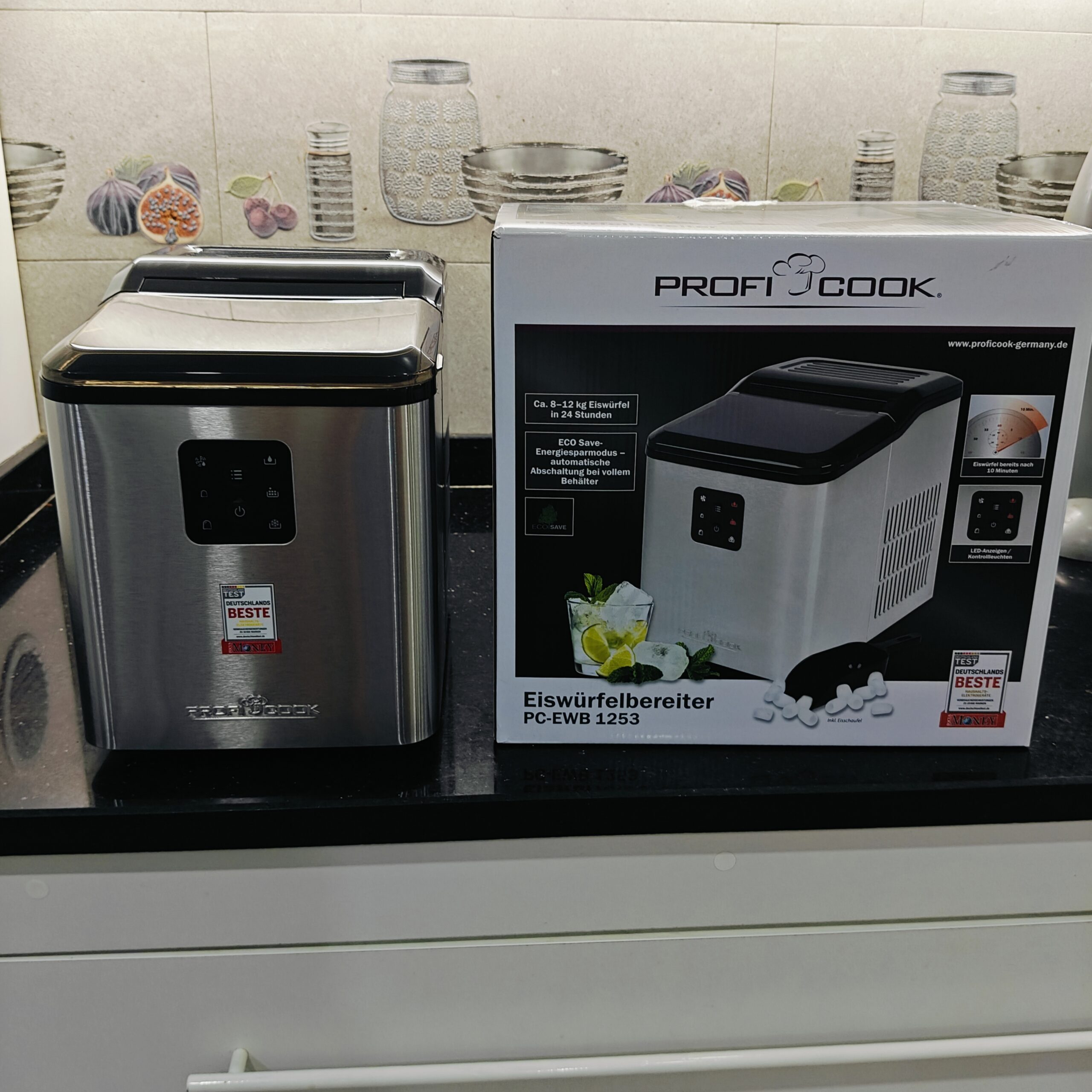 ✔️PROFICOOK PC-EWB 1253 -Glaçons en 10 minutes – Jusqu’à 12 kg de glace en 24 heures – avec 2 tailles de glaçons et réservoir d’eau de 1,5 l – inox inoxydable