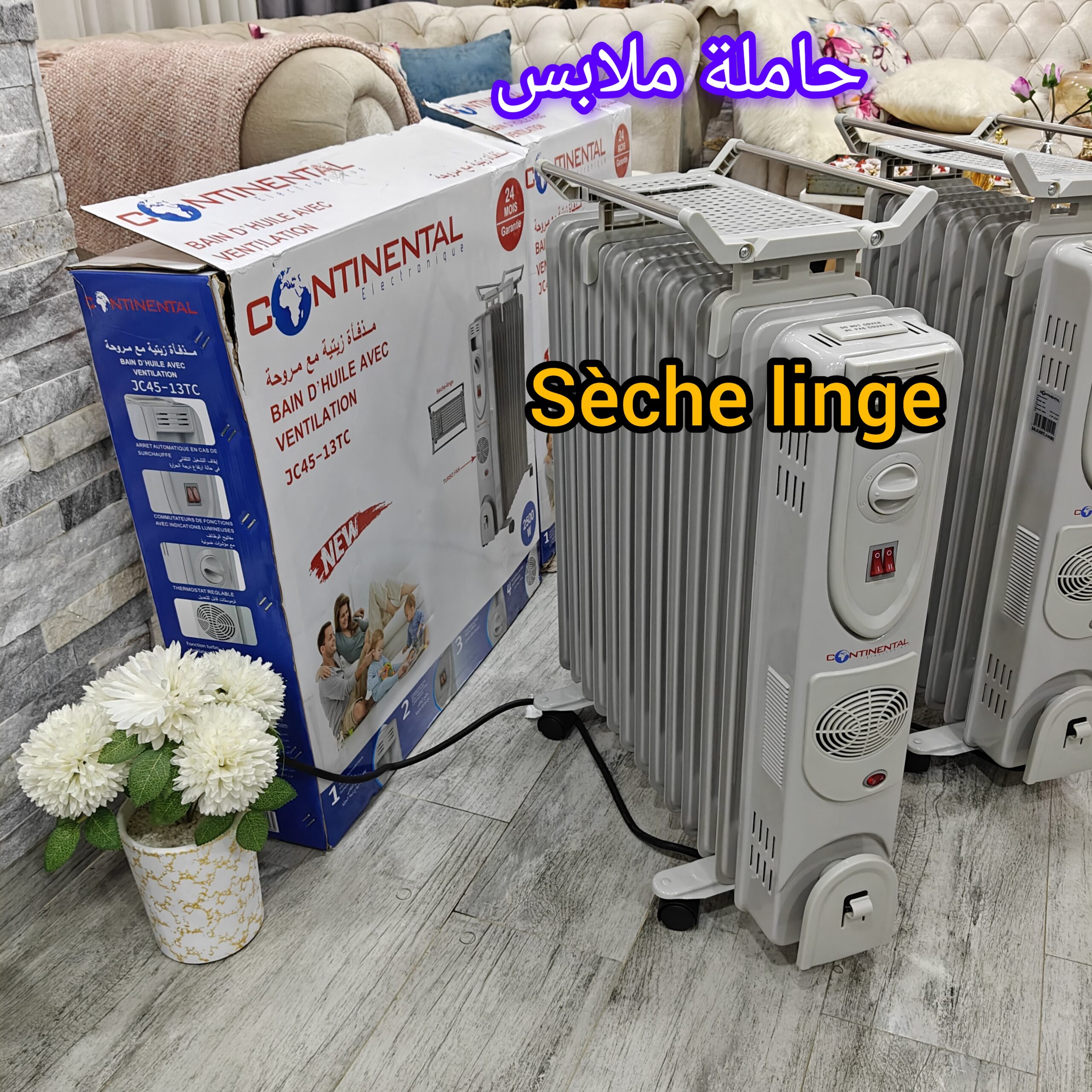 مدفأة زيتية فونتيلي بجانبين من شركة كونتينونتال عالية الجودة بقوة تسخين عالية بقدرة 2500 واط إبتداءا من مليون و 390ألف 🔥 بفضل تقنياتها المتقدمة و الفونتيلاتور ستحصل على تسخين سريع و حرارة موزعة بالتساوي في كل زاوية من منزلك 🏠 مثالية لتوفير الطاقة ⚡آمنة🛡️وسهلة الاستخدام و التنقل و فيها عجلات 💯 3 إعدادات للحرارة🔥تحتوي أيضا على حامل لتجفيف الملابس 😍 متوفرة بعدة أحجام